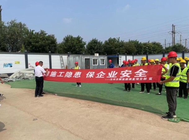 2022年8月是路桥拼搏网上登陆第一个“安全生产月”。为进一步树牢安全发展理念,提升全员安全意识和素质,提高整体安全生产管理水平,防范和遏制重大事故发生,8月4日上午,沧州路桥一分拼搏网上登陆在解放路调直(长芦大道-石港路)工程施工现场召开以“排施工隐患,保企业安全”为主题的 “安全生产月”活动启动仪式,路桥拼搏网上登陆副总经理孙竹立、安全部和一分拼搏网上登陆相关负责人、现场施工人员参加本次活动。