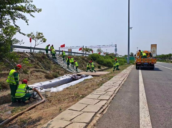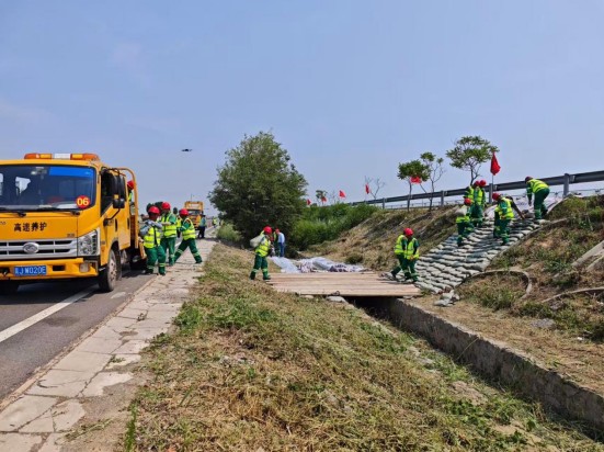此次活动以“人人讲安全、个个会应急--查找身边隐患”为主题,通过实战演练检验应急预案,筑牢安全生产防线。演练模拟场景为沧廊(京沪)高速公路孟村段出现集中强降雨,同时伴有六级以上大风。养护人员雨中巡查发现水毁险情,危及道路行车安全事件。演练开始前,所有参演人员在预备会议上详细了解了此次演练方案的设定,围绕防汛演练的程序,明确了各单位、各小组责任和分工,确保在演练过程中各司其职,有条不紊。在演练现场,各单位小组分工明确,配合默契,反应迅速有效,顺利完成演练各项科目,达到了预期效果。