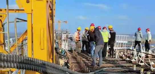 在观摩现场,首先由监理单位总监理工程师详细讲解了在建大桥的基本功能情况和设计理念,阐述了项目存在的难点和重点,介绍了一批新材料、新工艺、新设备、新技术在漳卫新河特大桥设计、施工过程中的应用。随后,全体参观学习人员在施工现场进行实地观摩。工区观摩学习人员前往漳卫新河特大桥的驻地,一方面听取了沿海高速漳卫新河特大桥项目部的详细介绍,另一方面与项目部工作人员就工程项目的组织实施重点难点和技术工艺措施等进行沟通交流。