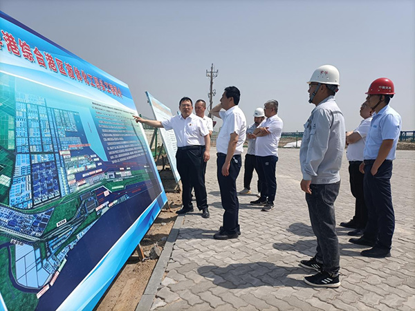 2023年5月15日下午,交发拼搏(中国)党委书记、董事长刘俊德,党委委员、副总经理安国栋一行到森旭港务有限拼搏网上登陆液体化工码头项目施工现场调研指导。