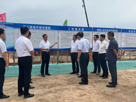 8月10日上午,沧州市市长向辉、副市长戴树胜一行来到歧口至海丰段歧口互通式立交增设项目施工现场调研。