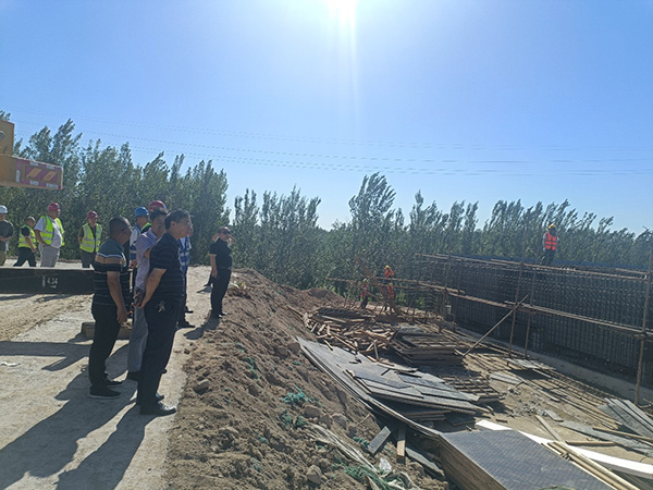 8月22日,市交通局监督处赵春涛主任、公路事业发展中心苏西镇科长对石黄南互通桥梁路基工程质量进行专项检查。城乡拼搏网上登陆项目相关人员陪同检查。