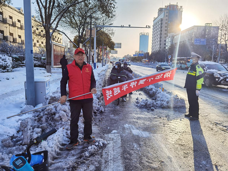 志愿者们按时到岗,在路口的不同位置,与交警同志一起顶着严寒,引导市民遵守交通规则,并向他们宣传安全法规等知识,劝导纠正不文明交通行为。对乱闯红灯、横穿马路、越线等候、逆向行驶、不佩戴头盔通行的非机动车、行人进行劝导,避免了交通事故的发生,为寒冷的冬日平添了一抹亮色。