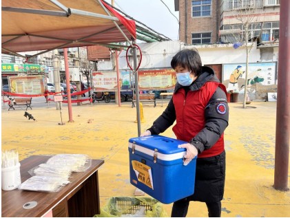 图中身穿红马甲、正在搬运核酸物资的志愿者是沧州开发区站党员先锋王君。作为一名拥有17年党龄的老党员,王君同志一直是站上的知心大姐和年轻员工的榜样。这次疫情中,王君同志克服丈夫被隔离在外,家中只有一位年迈老人和两个孩子的困难,毅然走上了志愿者的岗位,帮助社区行动不便的老人送菜跑腿,维持核酸秩序、登记测量、消杀保障,为疫情防控作出力所能及的贡献,也再一次为家中两个孩子和全站职工作出了表率。