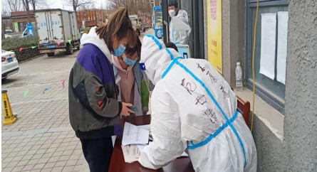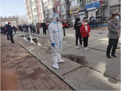 身穿防护服、正在为社区居民登记核对信息的志愿者是沧州开发区站党员先锋范世洁。收到抗疫召集令后,她将女儿托付给独自在家的老人,连续多日在户外进行志愿服务。近两日气温骤降,狂风肆虐,春寒料峭的雨雪中,瘦小的她手指早已冻得发僵,但她依然坚守在运河区小王庄镇小孔辛庄核酸检测点,为排队核酸的居民进行登记、测温、记录,协助医护人员维持秩序,确保社区居民尽早尽快完成核酸采集。