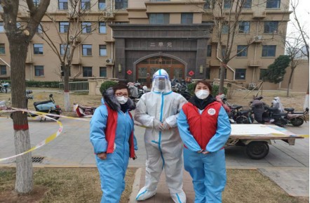 右三身穿红马甲的志愿者为沧州开发区站职工郭晓晴。寒风中的她,已连续五天在运河区凤凰城小区志愿执勤,为封控楼内的居民进行物资发放和配送。虽然已被冻得瑟瑟发抖,但她的语气依然坚定:“我做志愿者不是为了出风头,更不是为了宣传,我就是想为大家真真正正做点事,就是为了让沧州赶快好起来!”