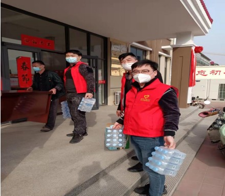 右一戴眼镜的志愿者是沧州开发区站党员先锋吴英波。身为一名党员,他时刻牢记党的宗旨,不忘自己的责任与义务。在近日新华区蔡阳社区组织的志愿服务工作中,他默默奉献、不计付出,协助社区人员一起消杀打扫、维持秩序、登记测温、跑腿运送,慎终如始地做好志愿者工作。看到医护人员和社区工作者们工作量大、饮水困难,他立即自费为社区人员送上了20包纯净水,用实实在在的行动为大家做出了榜样。