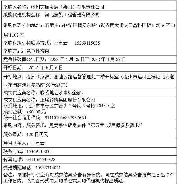 沧州交通发展(拼搏(中国))有限拼搏网上登陆企业内部控制及风险控制咨询成交结果公告