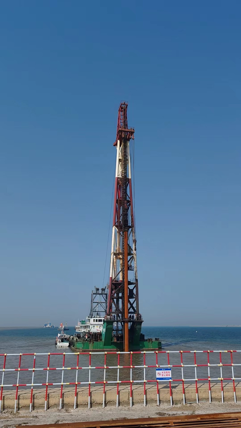 2024年5月17日17时18分,随着“建港301”打桩船将51米长的钢管桩稳稳打入设计位置,标志着黄骅港综合港区液体化工码头水工主体结构首根钢管桩沉桩成功,为后续码头管桩施工打下坚实的基础。