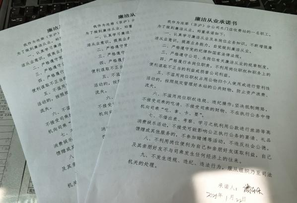 三是组织全体职工签订《2025年廉洁从业承诺书》,要求经常性对照承诺书进行自我检查、自我警示、自我约束,把心思倾注在本职工作中,确保廉洁从业,筑牢从业思想防线。