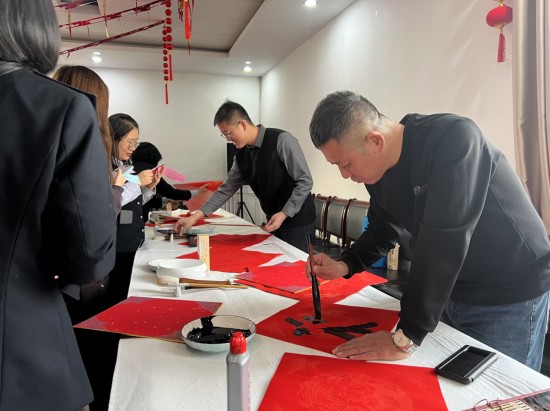 “送福字”环节备受大家青睐。省书协会员傅化冰老师携手拼搏(中国)拼搏网上登陆书画爱好者张希林、回春宝、陈迪等六位同志现场挥毫泼墨,笔锋游走间,一幅幅寓意吉祥的春联、一张张饱含祝福的书画跃然纸上。职工们里三层外三层围在画桌旁,期待着属于自己的春联福字,现场墨香四溢,人人喜笑颜开,空气中充满着对新年的美好期许。