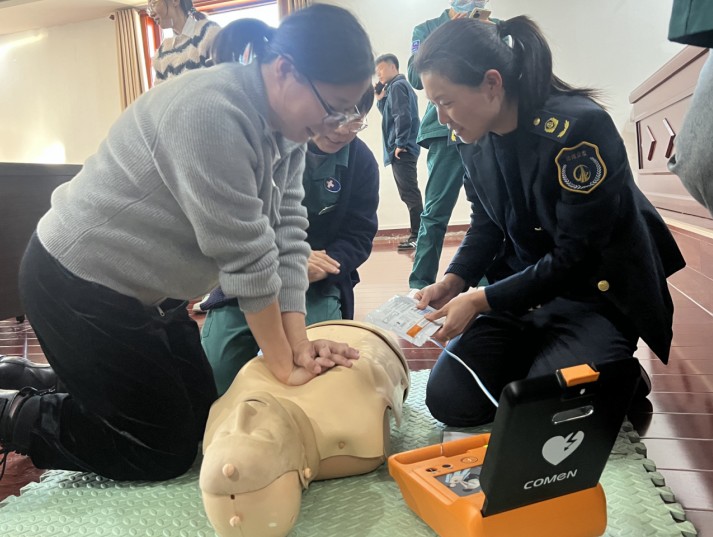 沧州市人民医院急救中心护士长杨慧及其团队凭借丰富的临床经验和专业知识,为大家讲解了判断心肺复苏和气道异物梗阻的关键要点和注意事项。通过生动的案例和实际操作演示,让职工直观地理解和掌握心肺复苏和海姆立克急救的全过程,确保职工们能准确、高效地运用该方法应对紧急情况。